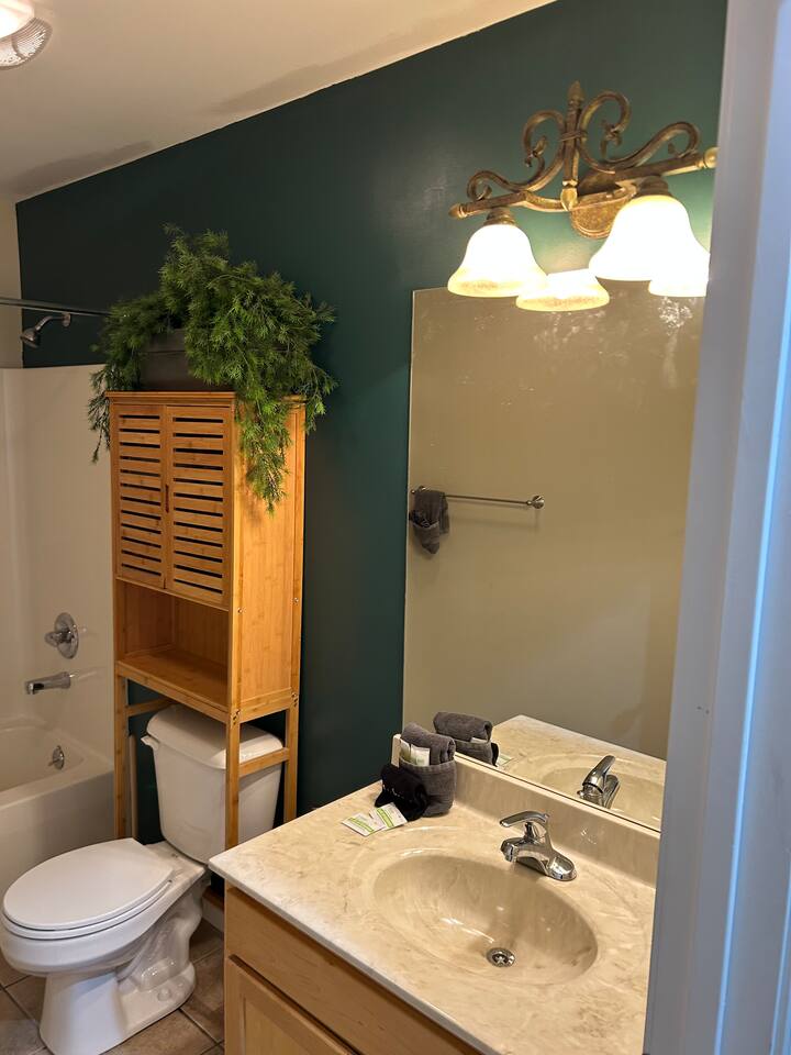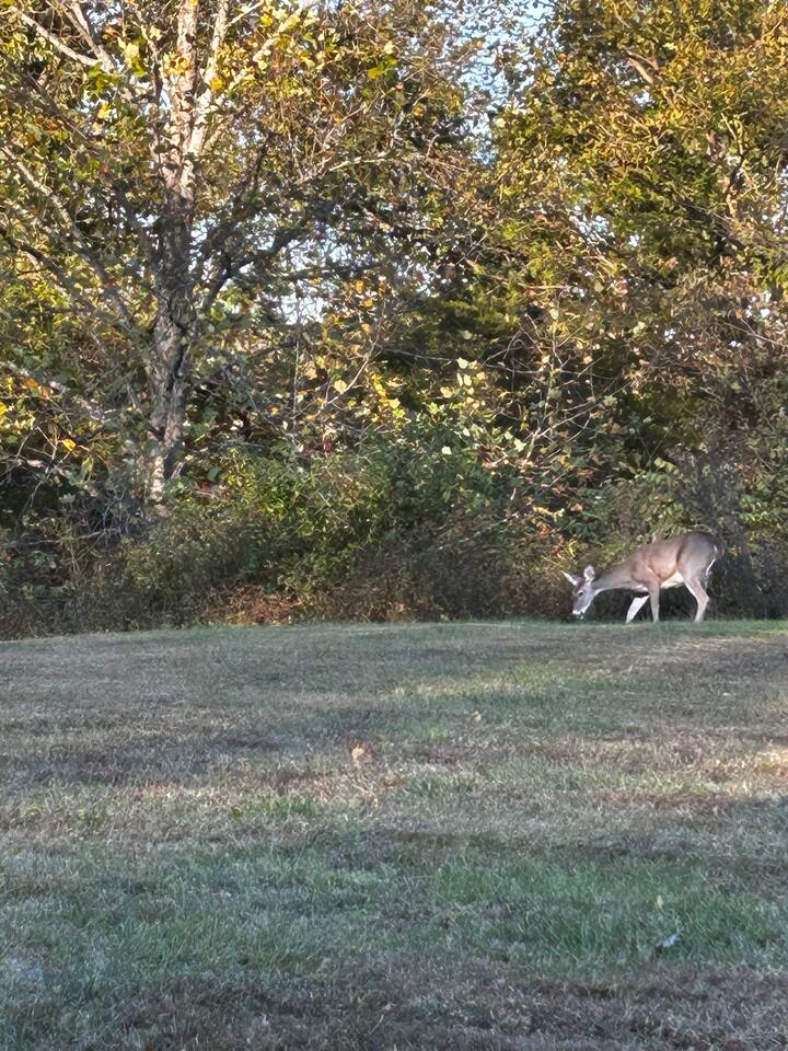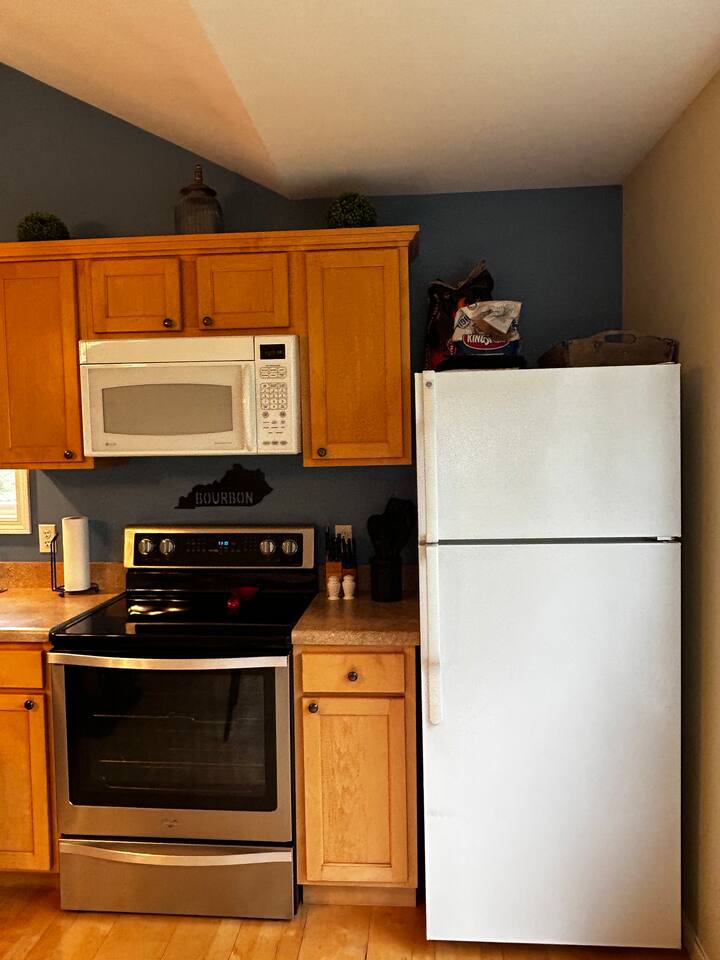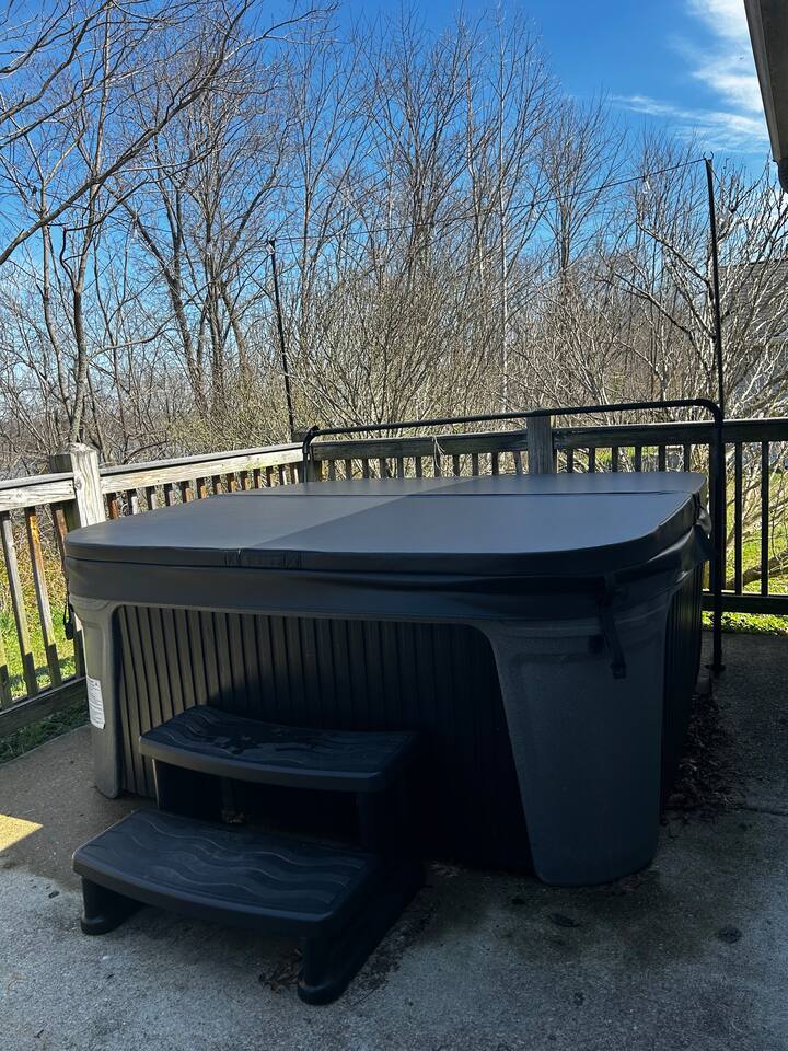 Welcome to Taylorsville Tranquil Retreat! Our 950 sq. ft. cottage has 2 bedrooms. The master bedroom features 1 king size bed. The second bedroom features 1 twin size bed, 1 twin size bunk bed, and 1 trundle bed. There is also 2 full size bathrooms, one of which is an in-suite to the master bedroom. Toiletries, towels, and a hair dryer will be provided. Located in the hallway is a washer and dryer to keep your clothes clean after an adventurous day at Tanglewood Golf Course or Taylorsville Lake. The kitchen has a stove, oven, fridge, freezer, microwave, dishwasher, dishes, and basic cooking products and utensils. There is also an extensive coffee and tea station with to-go cups to kickstart your day! Not feeling up to cooking dinner? Our favorites in the area are El Lago Bar & Grill and Snappy Tomato Pizza. Wind down for the night in the air-conditioned living room that also features a gas fireplace for the winter. Watch your favorite shows utilizing the Roku TV. Keep in touch with family and friends about your getaway via the complimentary WiFi. Had a long day of hiking at Taylorsville Lake State Park? Soothe those joints and muscles in the private hot tub located on the back deck! Edgewater Resort provides additional community amenities, including a seasonal outdoor pool, volleyball courts, events/clubhouse center, playground, fire pits, and hiking trails leading to the lake. A vehicle is required for getting around the area. Only 2 cars are permitted to park in the gravel driveway. Additional parking is available at the Welcome Center/Gift Shop or at the back of the resort where the Clubhouse is located. Nearby Attractions - Minutes from Taylorsville Lake Marina where you can rent boats and fish. Bring your own kayaks or paddle boards as there are no rentals in the area. - 6 Minutes from Tanglewood Golf Course - Various bourbon distilleries and wineries within 30 miles (book a bourbon trail tour bus to pick you up!) - 45 minutes from Churchill Downs (Kentucky Derby - first Saturday of May) - 1 hour from Keeneland - 1 hour and 30 minutes from Ark Encounter - 30 minutes from Shelbyville - 35 minutes from Bardstown -45 minutes from Frankfort (state capital) - 45 minutes from Louisville - 1 hour from Lexington - 2 hours from Cincinnati
