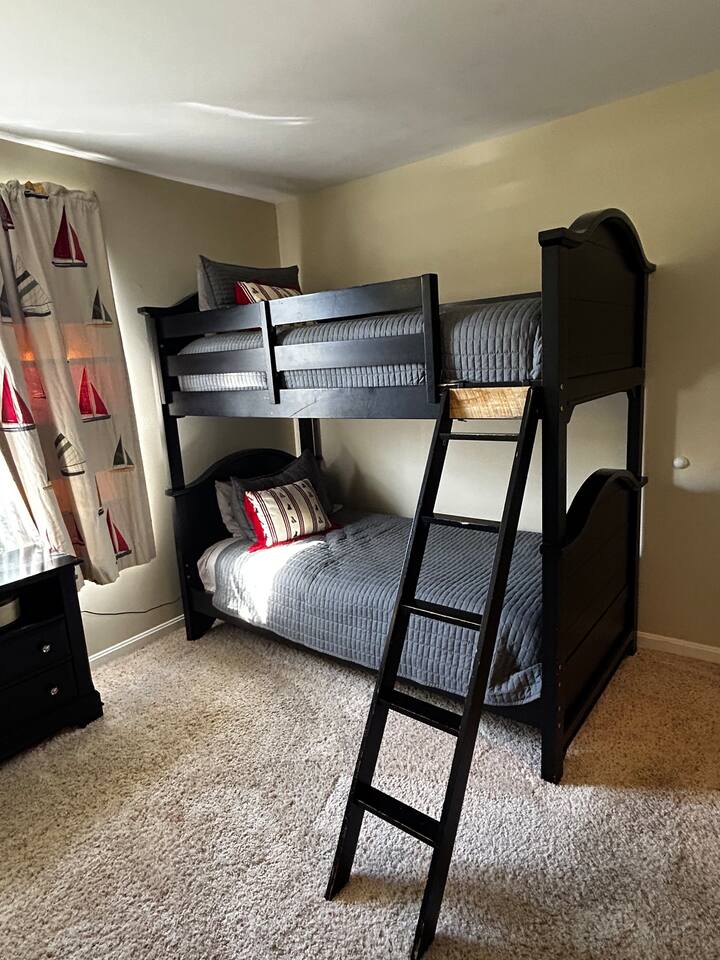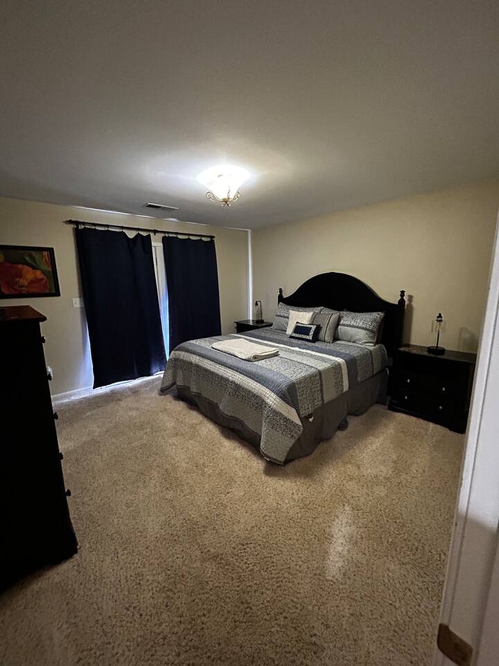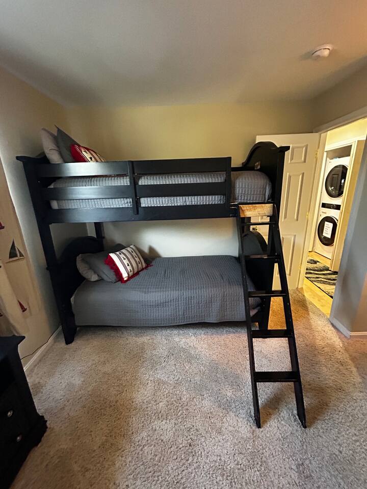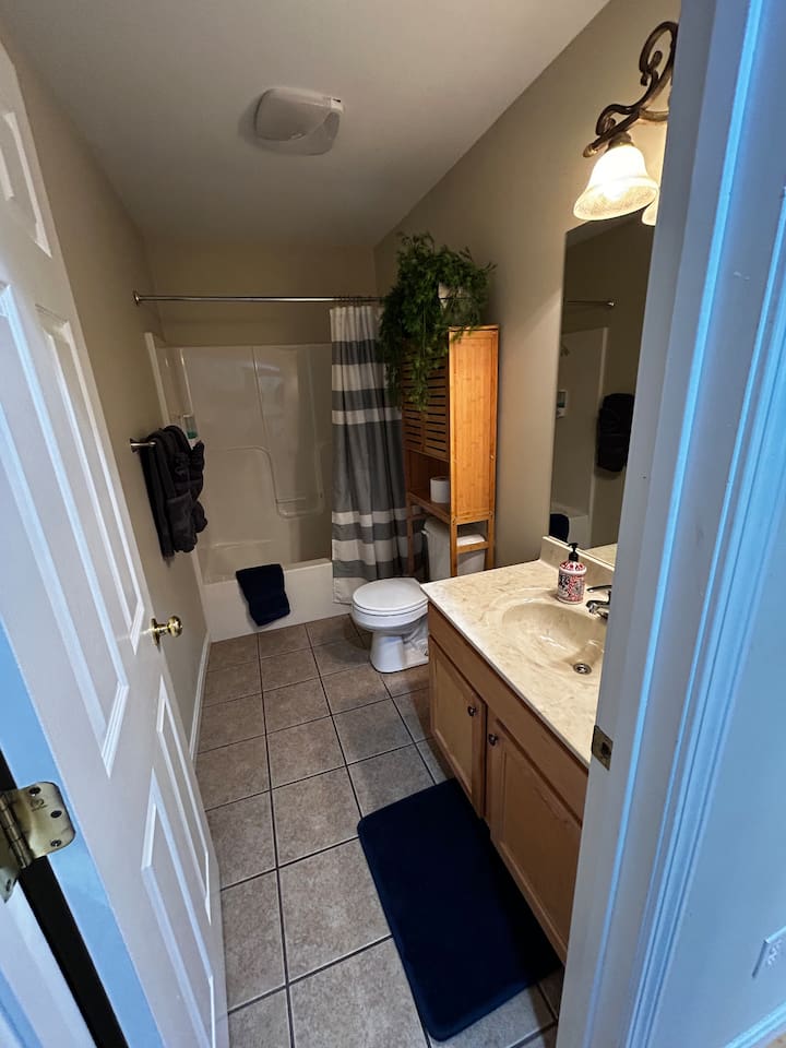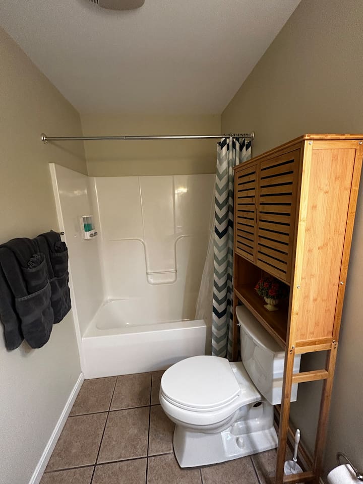 Welcome to Taylorsville Tranquil Retreat! Our 950 sq. ft. cottage has 2 bedrooms. The master bedroom features 1 king size bed. The second bedroom features 1 twin size bed, 1 twin size bunk bed, and 1 trundle bed. There is also 2 full size bathrooms, one of which is an in-suite to the master bedroom. Toiletries, towels, and a hair dryer will be provided. Located in the hallway is a washer and dryer to keep your clothes clean after an adventurous day at Tanglewood Golf Course or Taylorsville Lake. The kitchen has a stove, oven, fridge, freezer, microwave, dishwasher, dishes, and basic cooking products and utensils. There is also an extensive coffee and tea station with to-go cups to kickstart your day! Not feeling up to cooking dinner? Our favorites in the area are El Lago Bar & Grill and Snappy Tomato Pizza. Wind down for the night in the air-conditioned living room that also features a gas fireplace for the winter. Watch your favorite shows utilizing the Roku TV. Keep in touch with family and friends about your getaway via the complimentary WiFi. Had a long day of hiking at Taylorsville Lake State Park? Soothe those joints and muscles in the private hot tub located on the back deck! Edgewater Resort provides additional community amenities, including a seasonal outdoor pool, volleyball courts, events/clubhouse center, playground, fire pits, and hiking trails leading to the lake. A vehicle is required for getting around the area. Only 2 cars are permitted to park in the gravel driveway. Additional parking is available at the Welcome Center/Gift Shop or at the back of the resort where the Clubhouse is located. Nearby Attractions - Minutes from Taylorsville Lake Marina where you can rent boats and fish. Bring your own kayaks or paddle boards as there are no rentals in the area. - 6 Minutes from Tanglewood Golf Course - Various bourbon distilleries and wineries within 30 miles (book a bourbon trail tour bus to pick you up!) - 45 minutes from Churchill Downs (Kentucky Derby - first Saturday of May) - 1 hour from Keeneland - 1 hour and 30 minutes from Ark Encounter - 30 minutes from Shelbyville - 35 minutes from Bardstown -45 minutes from Frankfort (state capital) - 45 minutes from Louisville - 1 hour from Lexington - 2 hours from Cincinnati
