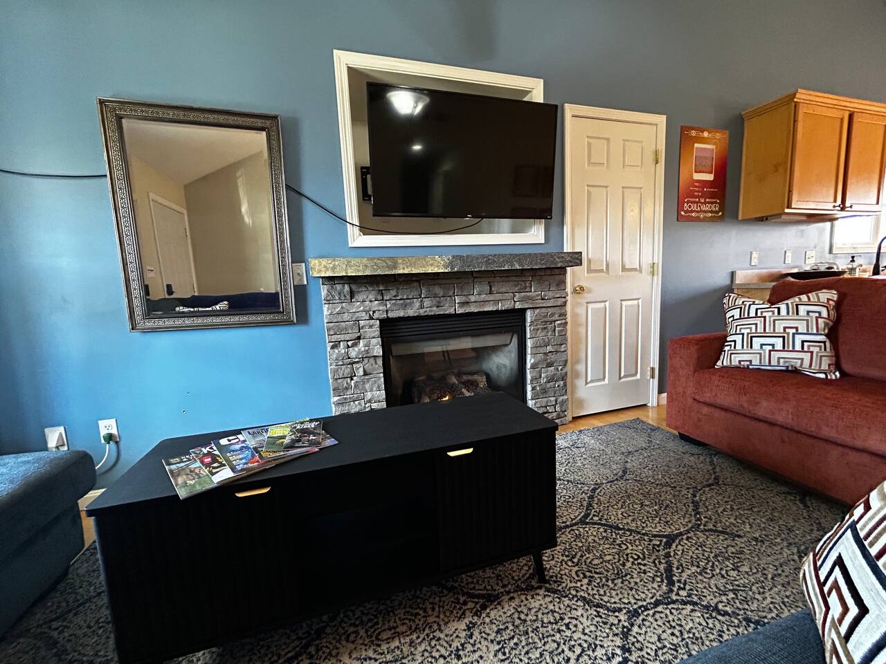 - Indoor fireplace